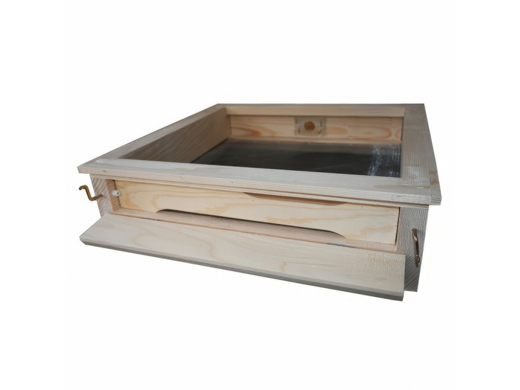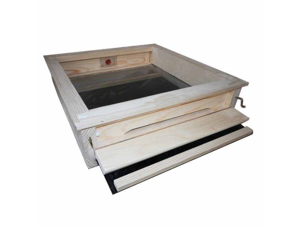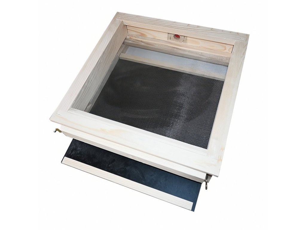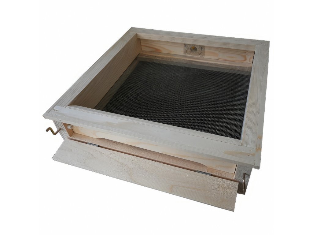 Díky pevnému rámu a přístupu zezadu lze dno využít také při práci se smetencem nebo sklepávání rojů. Volitelný PVC šuplík navíc umožňuje pohodlné sledování přirozeného spadu měli.