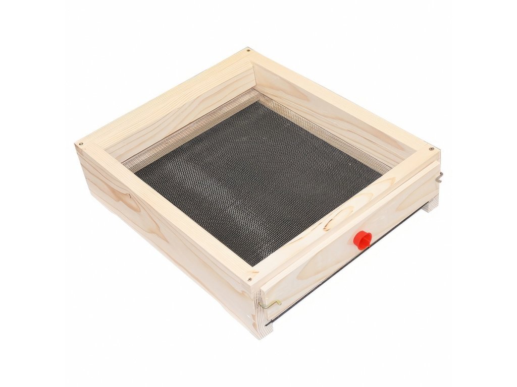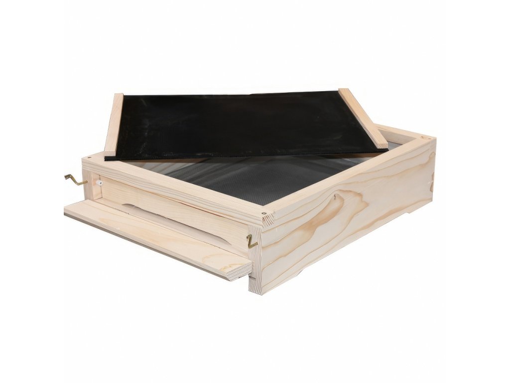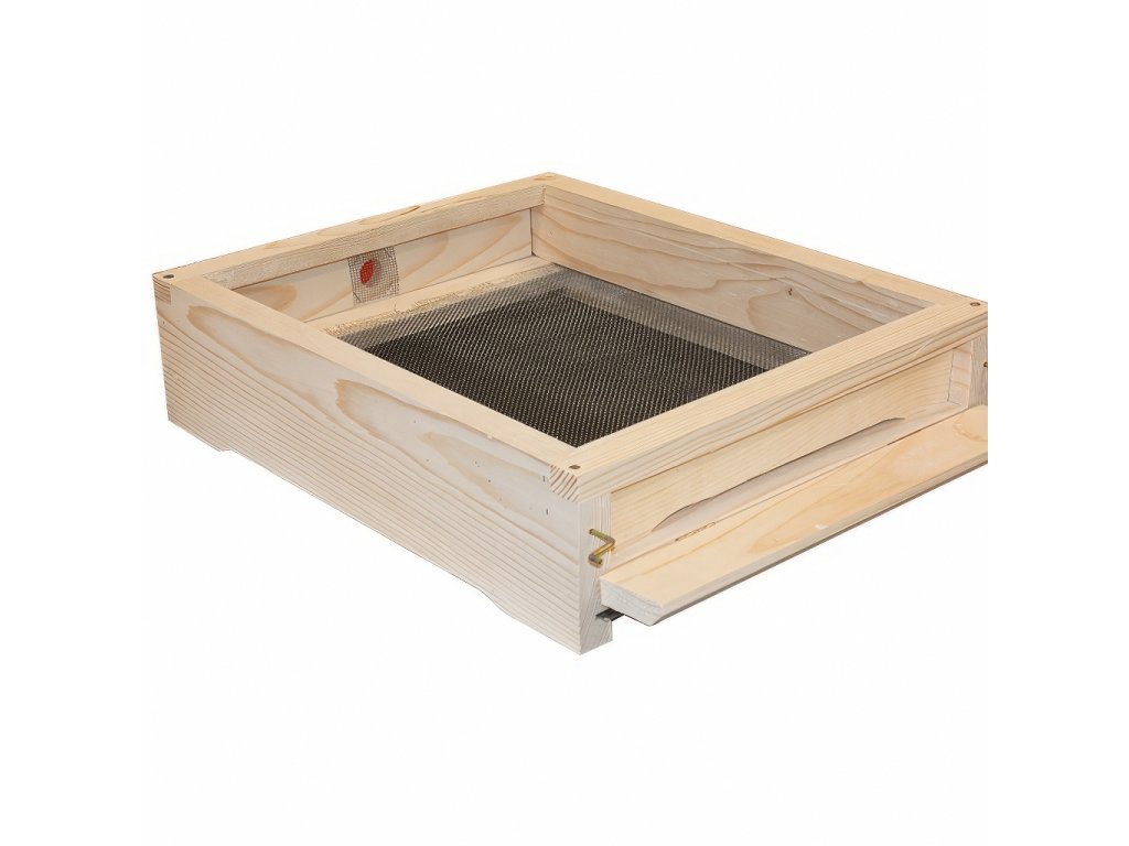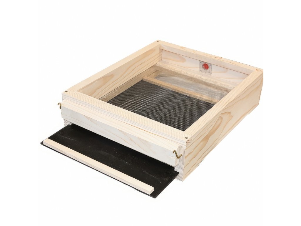 Díky kompletnímu zasíťování dna můžete snadno sledovat přirozený spad varroa roztočů během celého roku. Větrání přes celé dno zajišťuje optimální mikroklima i v nejteplejších měsících a pomáhá bránit přehřátí včelstva.