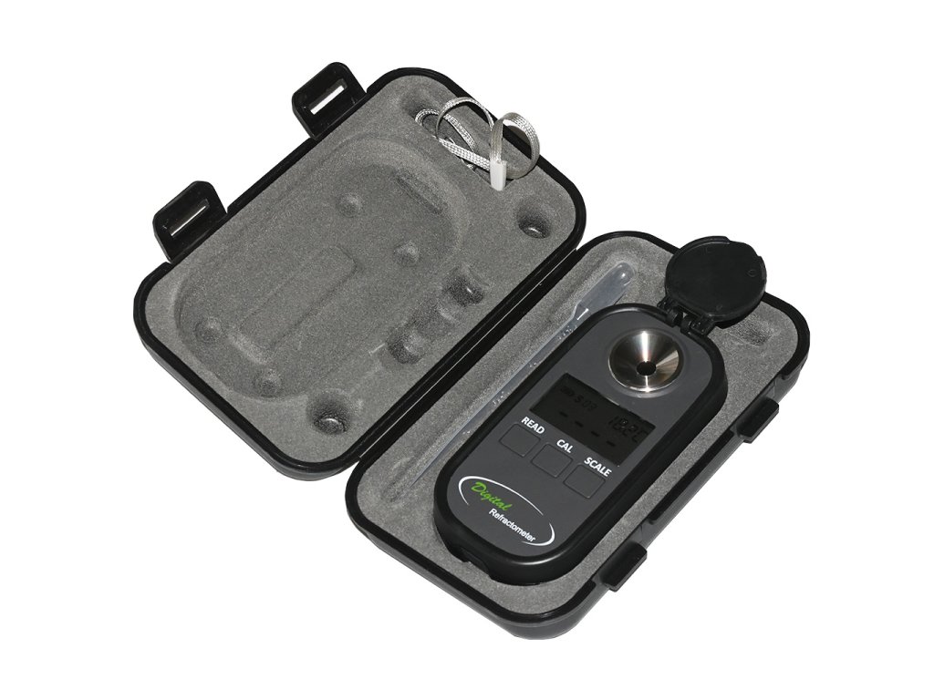 Digitální refraktometr využívá optické vlastnosti medu pro přesné stanovení obsahu vody a dalších veličin. Zabudovaný teploměr s automatickou teplotní kompenzací zajišťuje konzistentní výsledky i při různých teplotách prostředí. Přístroj je zkalibrovaný z výroby, ale snadno jej znovu nastavíte pomocí destilované vody.