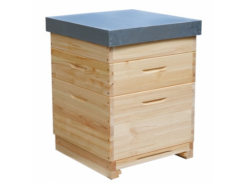 Základ úlu tvoří hluboký plodištní nástavek výšky 285 mm, ideální pro silné matky a intenzivní kladení. Dva medníky výšky 159 mm poskytují dostatek prostoru pro ukládání medu, zároveň však zůstávají lehké na manipulaci – ideální kombinace pro výkonné a přehledné včelaření.