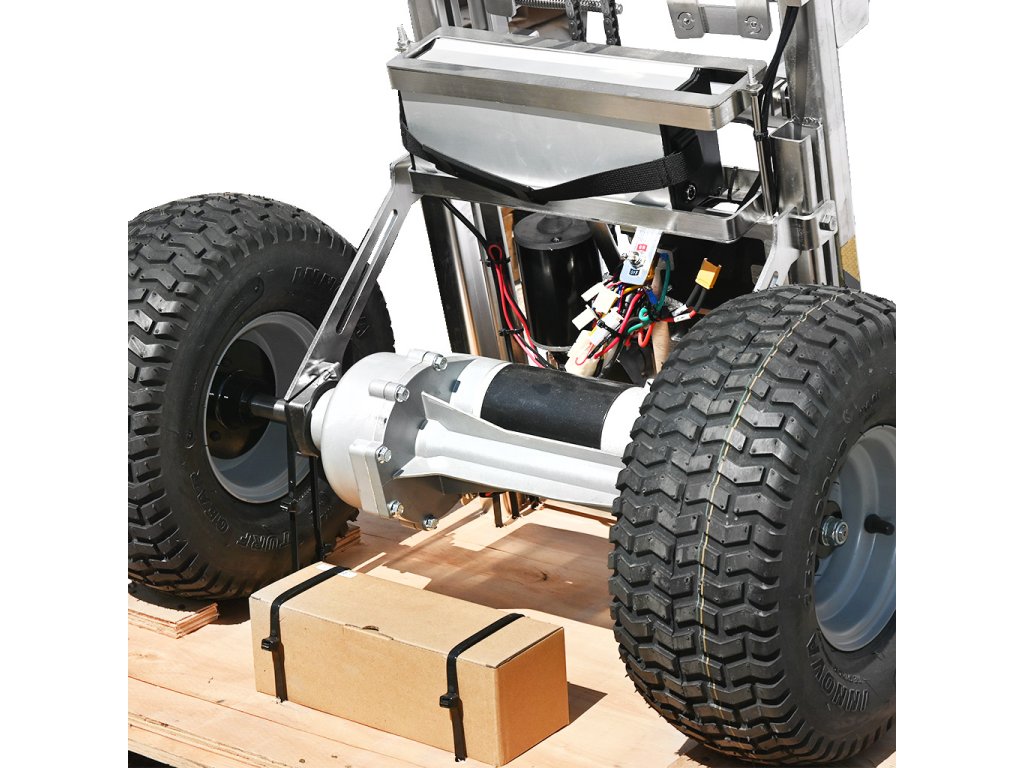 Vozík zvládne zatížení až 100 kg, jeho lithium-iontová baterie vydrží až 4 hodiny práce a maximální rychlost pohybu 6,5 km/h šetří čas při přesunech na stanovišti. Výška zdvihu 107 cm usnadňuje nakládání a vykládání břemen na různých úrovních.