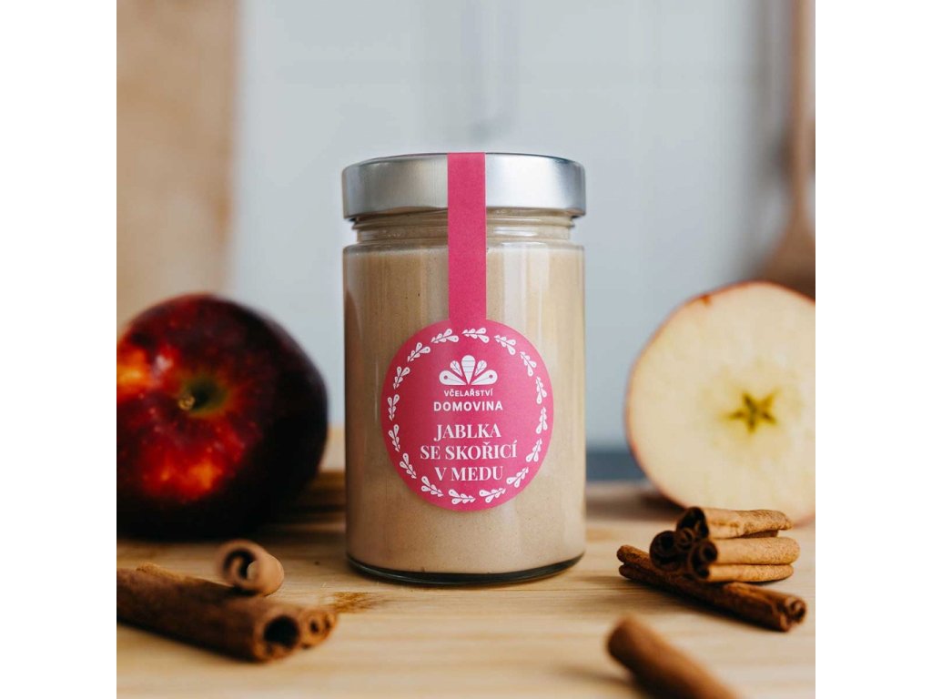 • Složení: kvalitní květový med, sušená jablka, mletá skořice
