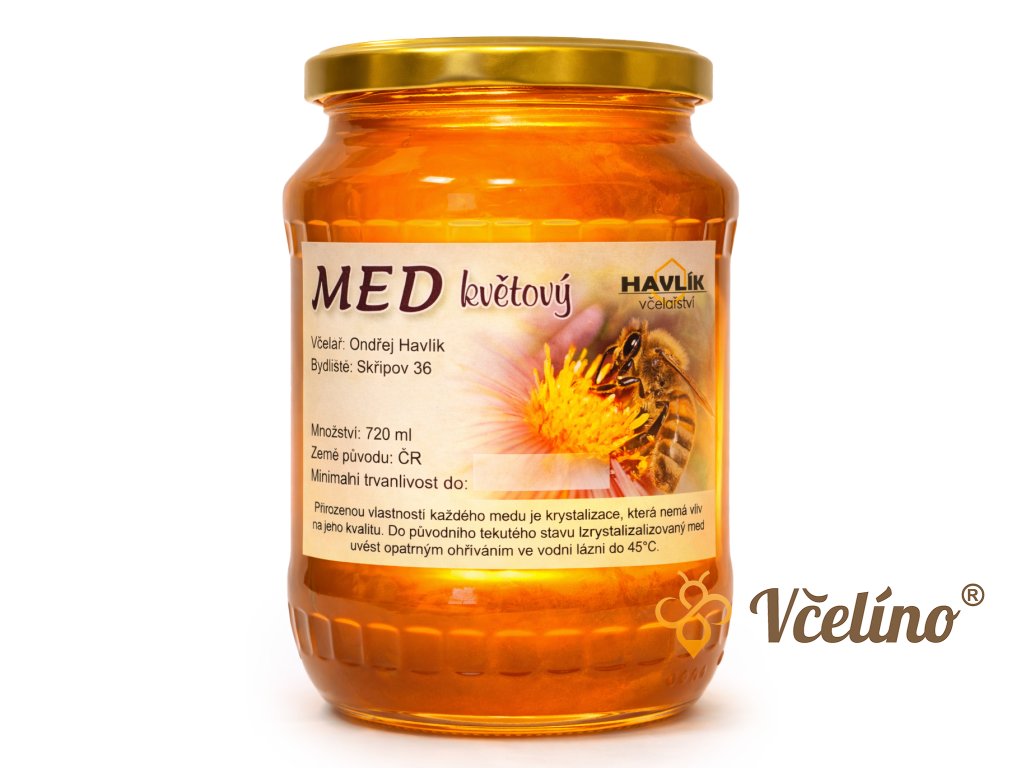 Med květový – 980 g – poctivý světlý květový med s lahodnou chutí. Čistě květový med světlejší barvy s vyrovnanou, jemně květinovou chutí. Typický svou rychlou krystalizací, která je přirozeným znakem kvalitního medu.