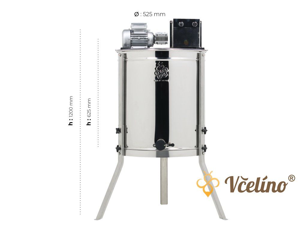 Tělo i koš z nerezové oceli AISI 304 splňují hygienické požadavky pro práci s potravinami. Pevné nerezové nohy zajišťují stabilitu při práci a dlouhou životnost. Víko z plexiskla je vyrobené z kvalitního odlévaného akrylátu a umožňuje bezpečné sledování procesu vytáčení. Ochranný spínač víka zabrání spuštění medometu při otevřeném krytu a zajišťuje tak bezpečný provoz během vytáčení. Robustní konstrukce, špičková kvalita dělá z tohoto medometu dokonalý nástroj k preciznímu a rychlému vytáčení medu.