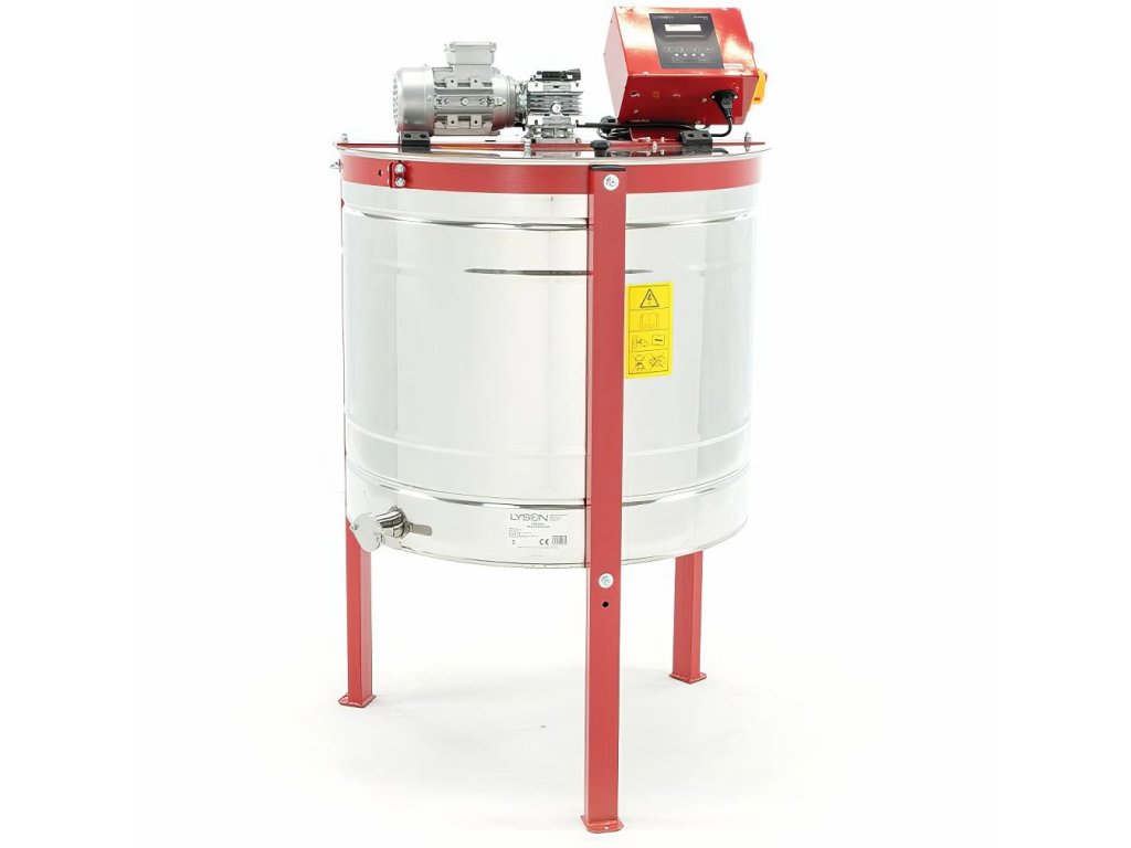 Výkonný nerezový medomet s horním motorem a automatickým programováním pro pohodlné a efektivní vytáčení medu.