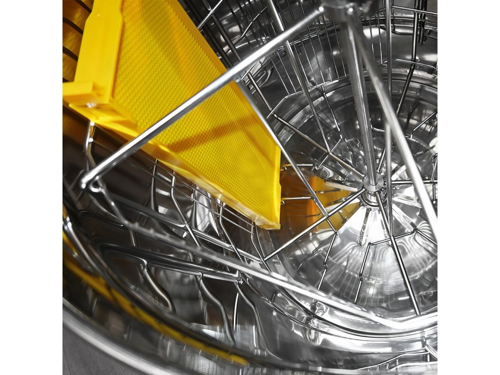 Reverzní otáčení umožňuje efektivní vytočení i těžších pláství, kdy je směr sklonu buněk proti otáčení. Motor je vybaven ventilátorem a regulací otáček pro maximální kontrolu.