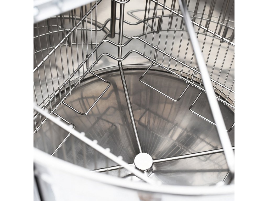 Špičkový čtyřrámkový medomet Swiss Biene s praktickým košem bez středové hřídele, který usnadňuje a zrychluje práci při vytáčení.
