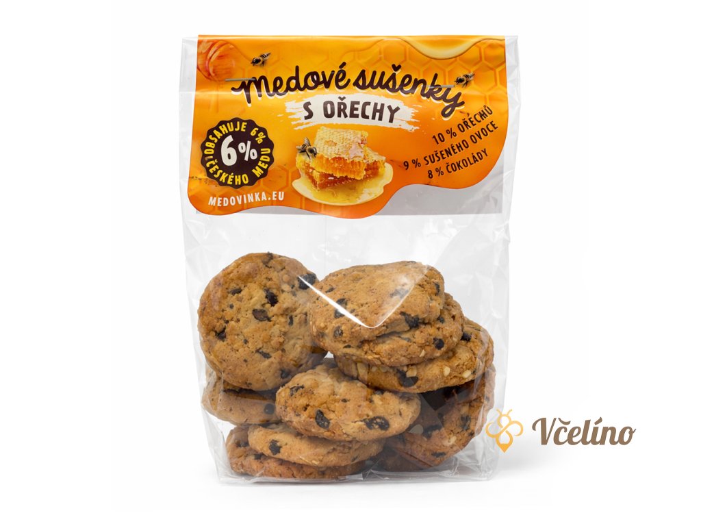 Dopřejte si poctivé křupání z medu, ořechů a čokolády – přidejte medové sušenky s ořechy do košíku a mějte chytré mlsání vždy po ruce. 🍪🍯