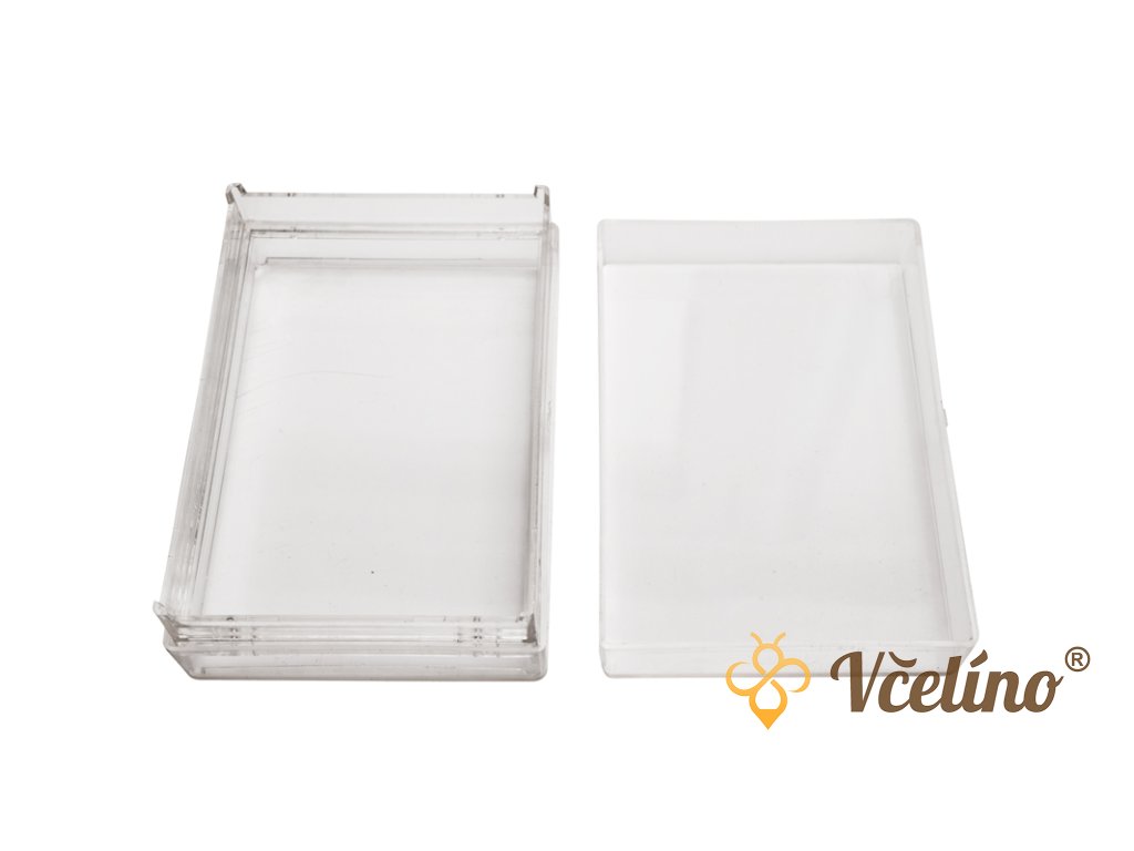 Miska na plástěčkový med plexi, 250g, 100x68mm je plastový obal určený pro skladování, přímou konzumaci a prodej medu ve formě panenského plástu. Umožňuje hygienické a estetické zabalení plástěčkového medu, který je ceněný pro svou čistotu, originalitu a přírodní formu. Tato miska se skládá ze tří částí – základního rámečku a dvou průhledných víček, které slouží jako spodní i horní kryt. Rámeček je tvořen dvěma díly, aby se mezi ně dala vložit mezistěna nebo vyříznutý vystavený panenský plást.