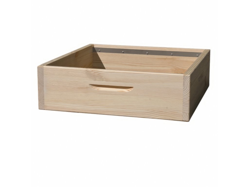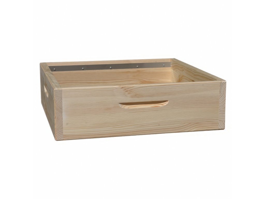 Rozměry odpovídají systému Dadant US – plně kompatibilní s ostatními výškami nástavků (141, 185, 232, 285 mm). Nástavek je vybaven bočními úchyty, které usnadňují manipulaci i při plné zátěži.