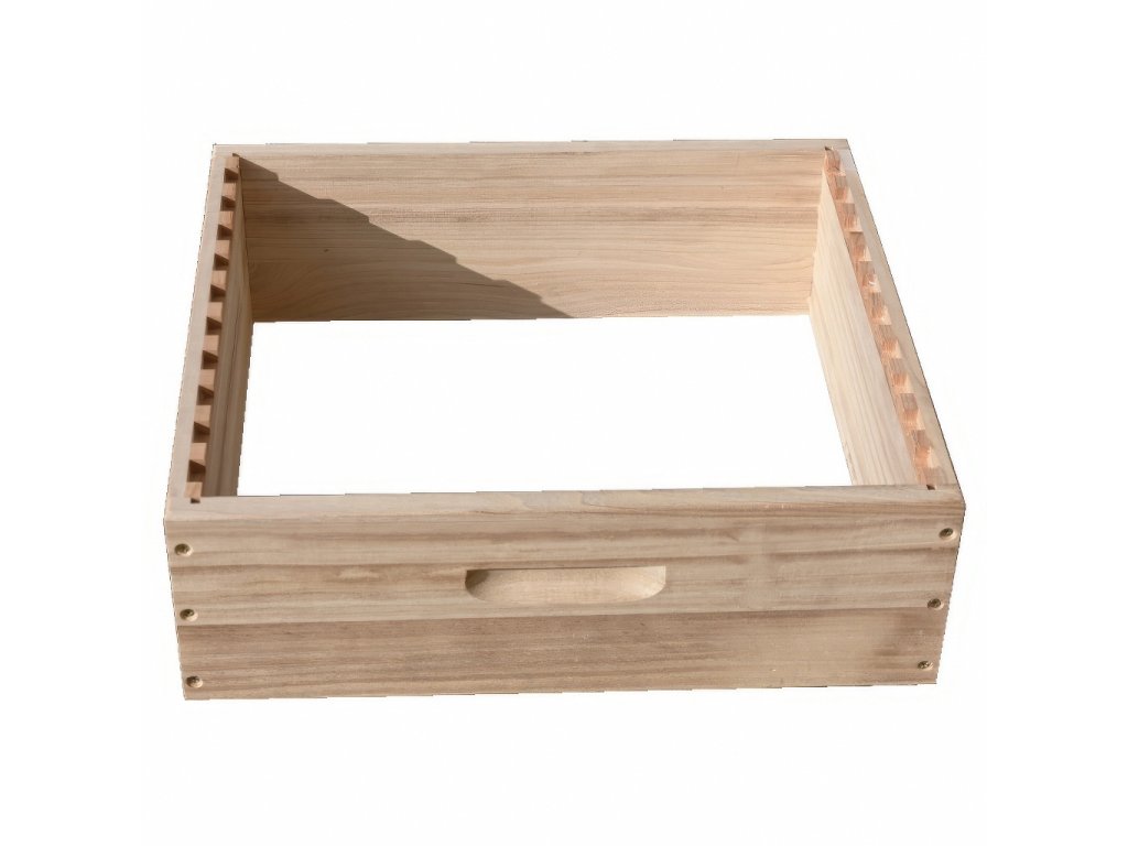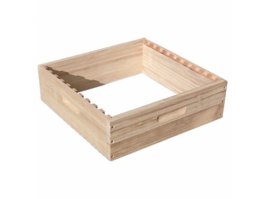 Nízký nástavek Dadant US 141 mm s dřevěným hřebenem – pro 10 rámků v úlu na 12 rámků
