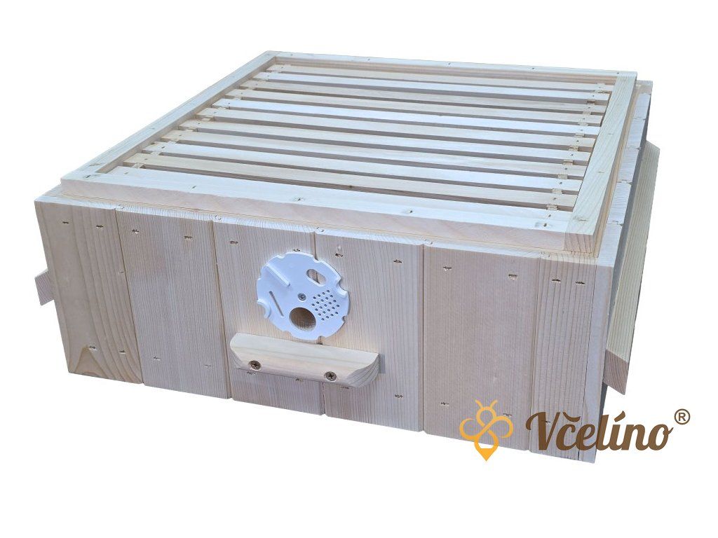 - Osazení mezi nástavkami: tvořeno dřevěným rámem na horní ploše 15x20mm (v x š) (vnější 460x460, vnitřní 420x420mm), spodní plochu nástavku překrývá vnější palubka po výšce o 15mm. Tento soulad výšek ve styku mezi nástavky (horní a spodní) nevytváří vnitřní spáru a tím se zamezuje slepení nástavku propolisem