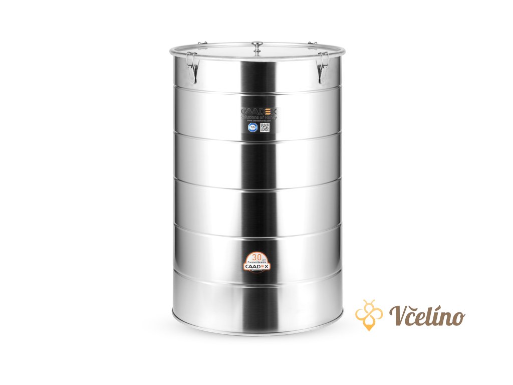 Velkoobjemová profesionalní nerezová nádoba CAADEX CAMT-110 pro skladování medu. Spolehlivá a hygienická nádoba z nerezové oceli, navržená speciálně pro bezpečné a dlouhodobé uskladnění medu. Vyrobeno z vysoce kvalitní nerezové oceli 1.4301