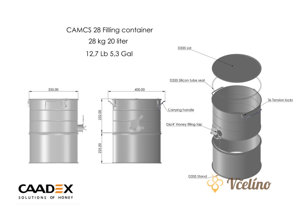 Stáčecí nádoby Caadex, testované organizací TÜV a vyrobené z nerezových materiálů, jsou speciálně navrženy pro skladování a stáčení medu.