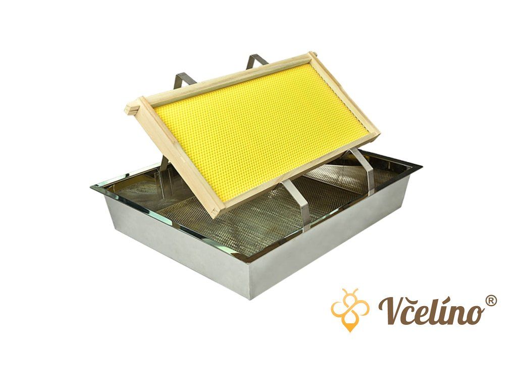 Odvíčkovací talíř nerezový je určen pro pohodlné a hygienické odvíčkování plástů při medobraní. Slouží jako stabilní pracovní nádoba, do které zachytáváte víčka i odkapávající med během práce s odvíčkovací vidličkou nebo nožem. Konstrukce umožňuje opření rámku o držáky, což usnadňuje manipulaci a zvyšuje komfort při práci. Nerezové provedení je vhodné pro přímý kontakt s medem a zajišťuje dlouhou životnost i při pravidelném používání.