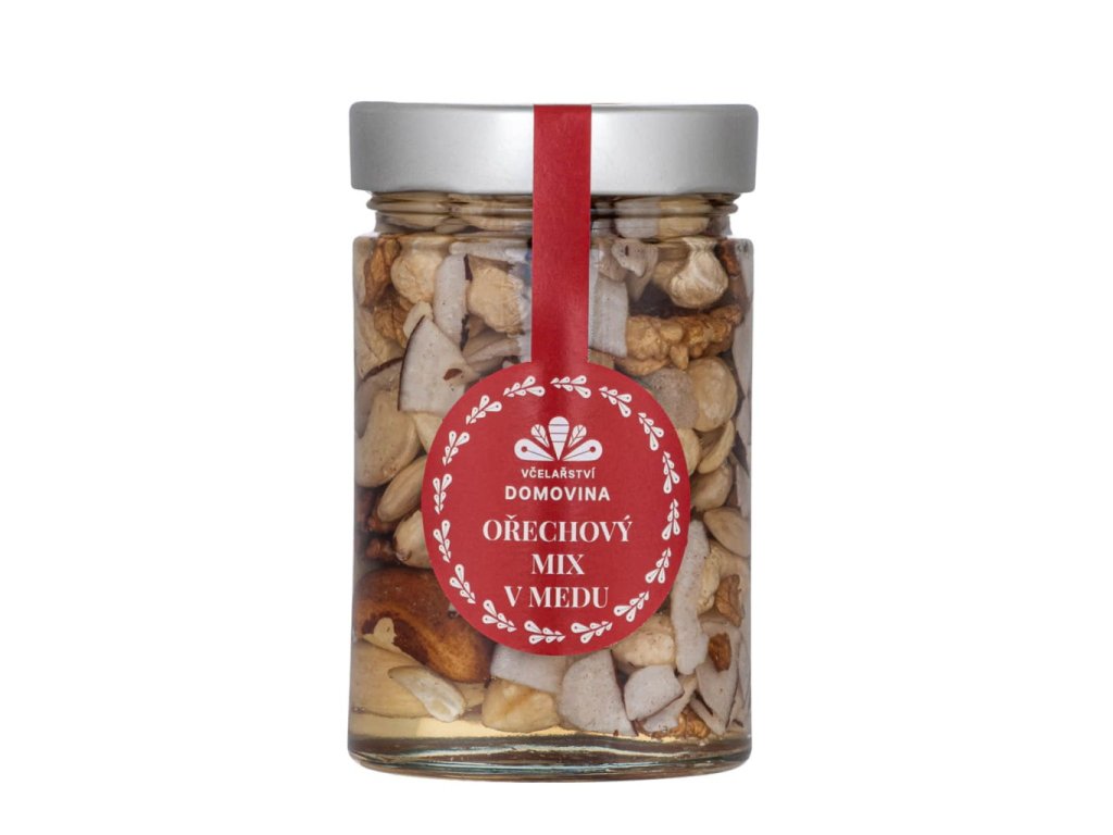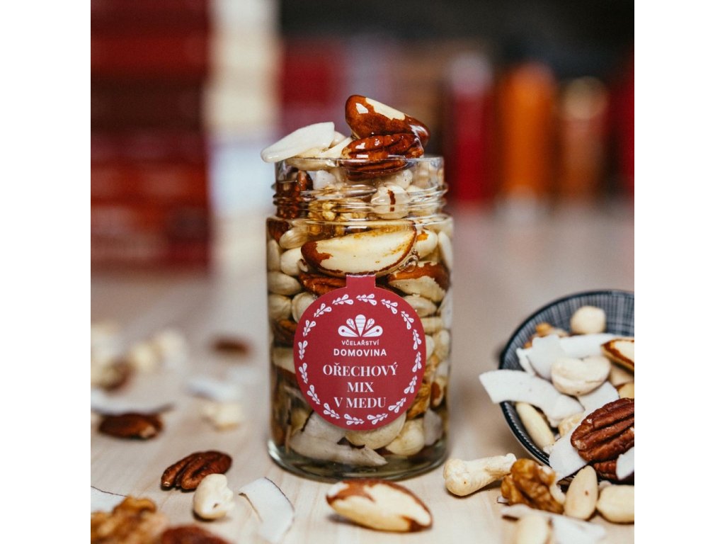 • Složení: vlašské ořechy, mandle, para ořechy, kešu, pekany, lískové ořechy, kokos, akátový květový med