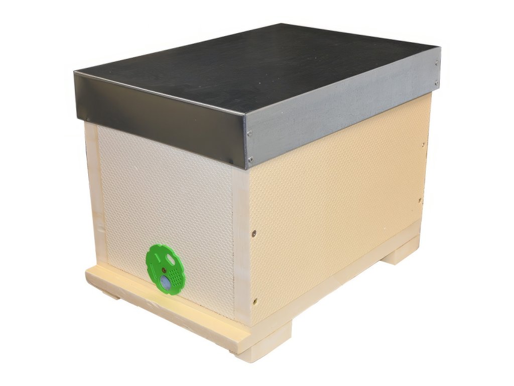 30 mm silné stěny z tvrzeného polystyrenu zajišťují výborné tepelně izolační vlastnosti, odolnost proti vlhkosti a dlouhou životnost. Víko je navíc zateplené a chráněné plechem, takže včely jsou v bezpečí i při převozu.