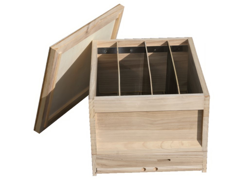 Díky dělenému systému na čtyři části můžete v jednom plemenáči chovat až čtyři samostatné minirodiny – ideální pro testování, rozchov i přechov matek. Komorovací přepážky zajistí dokonalé oddělení jednotlivých sekcí a česnové otvory umožňují samostatný let každého oddělku.