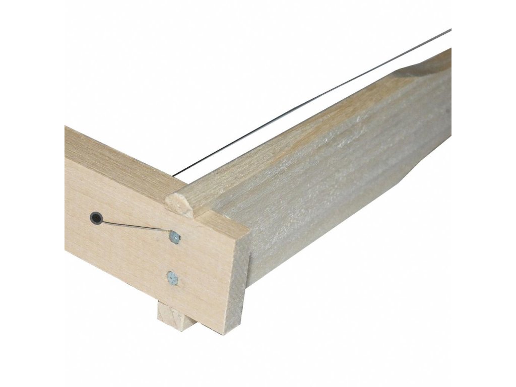 Konstrukce rámku je navržena pro dlouhodobé použití – dvojité stlučení nebo sešití sponkami drží rámek pevně pohromadě i při velkém zatížení. Lipové přířezy zajišťují ideální poměr mezi nízkou hmotností a dostatečnou pevností pro každodenní práci ve včelíně.