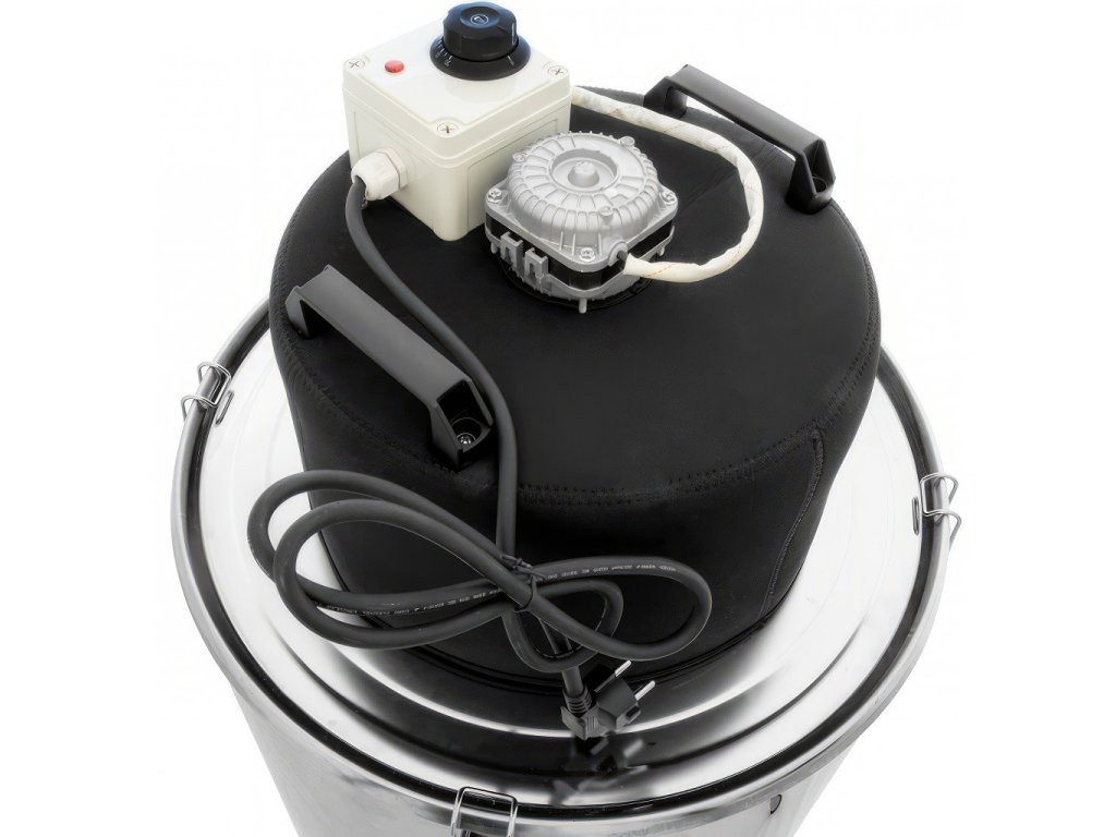 • Ventilátor: Přídavný ventilátor pod ohřívačem zajišťuje nepřetržitou cirkulaci vzduchu a rovnoměrnou teplotu v celé nádobě.