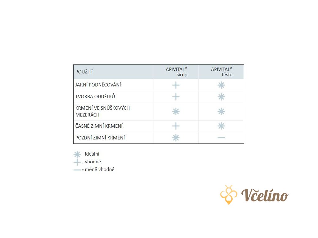 Krmení APIVITALem vede k silnějším, vitálnějším včelstvům a rychlejšímu jarnímu rozvoji. Sirup je zcela bez škodlivin a balastních cukrů jako maltóza či maltotrióza, čímž šetrně podporuje včelí metabolismus.