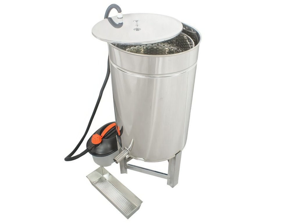 Vařák má objem 70 litrů, což znamená, že můžete zpracovávat větší množství vosku najednou. Nerezový koš o průměru 350 mm a výšce 350 mm poskytuje dostatek prostoru pro efektivní tavení vosku.