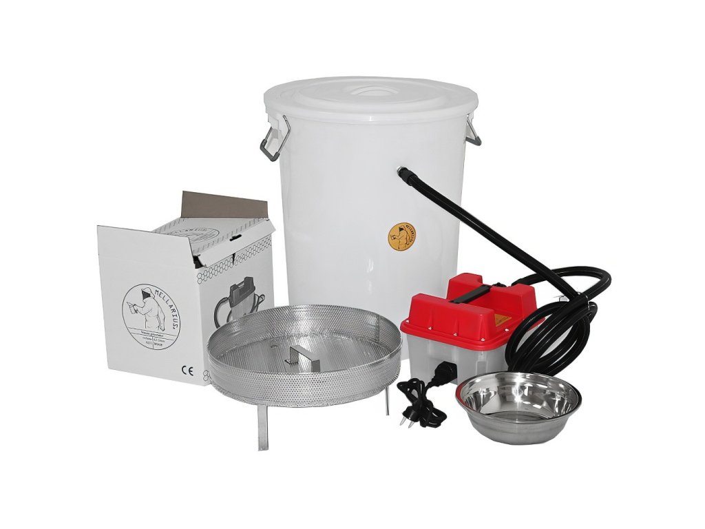 Plastový vařák Mellarius využívá parní vyvíječ o výkonu 2,2 kW, který generuje páru k tavení vosku z rámků nebo souší. Pára ohřívá vosk, který následně odkapává dolů, přičemž nerezové síto zajišťuje čistotu vosku bez mechanických zbytků.