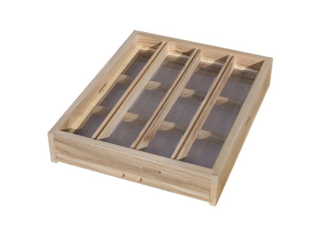 Nerezová mřížka umožňuje kontrolu spadu roztoče Varroa a zajišťuje dostatečné větrání v každé sekci. Stabilní konstrukce je navržena pro dlouhodobé použití i v náročnějších podmínkách.