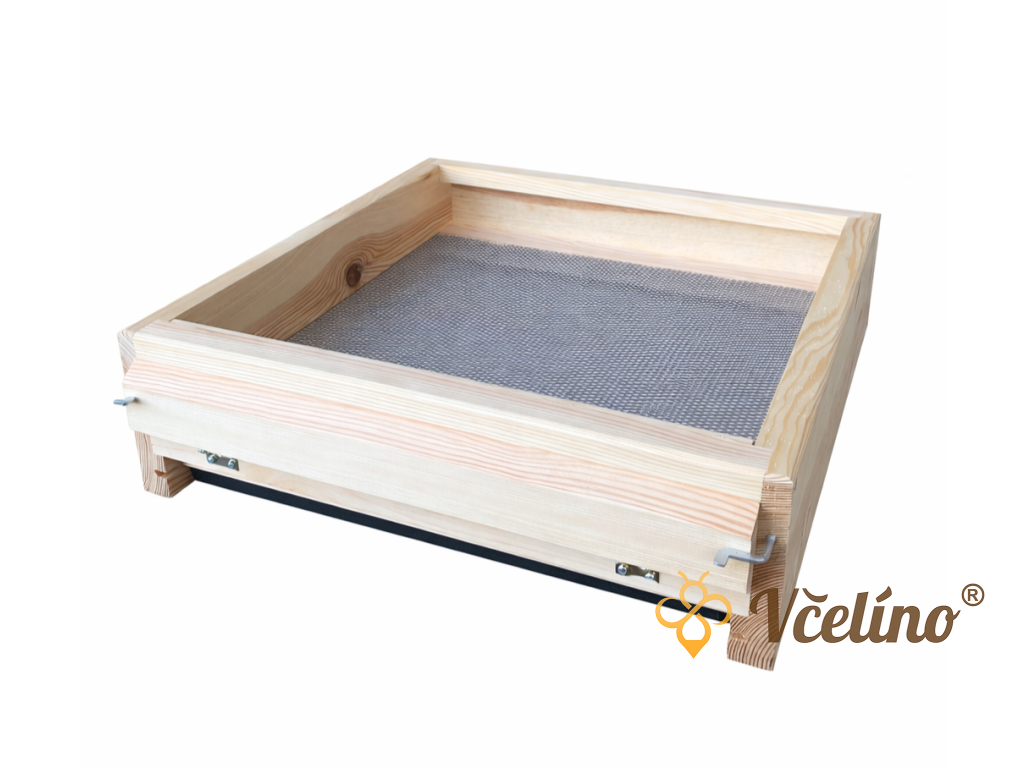 Klasické dřevěné dno pro tenkostěnné úly s možností kontroly spadu roztočů a snadným čištěním.