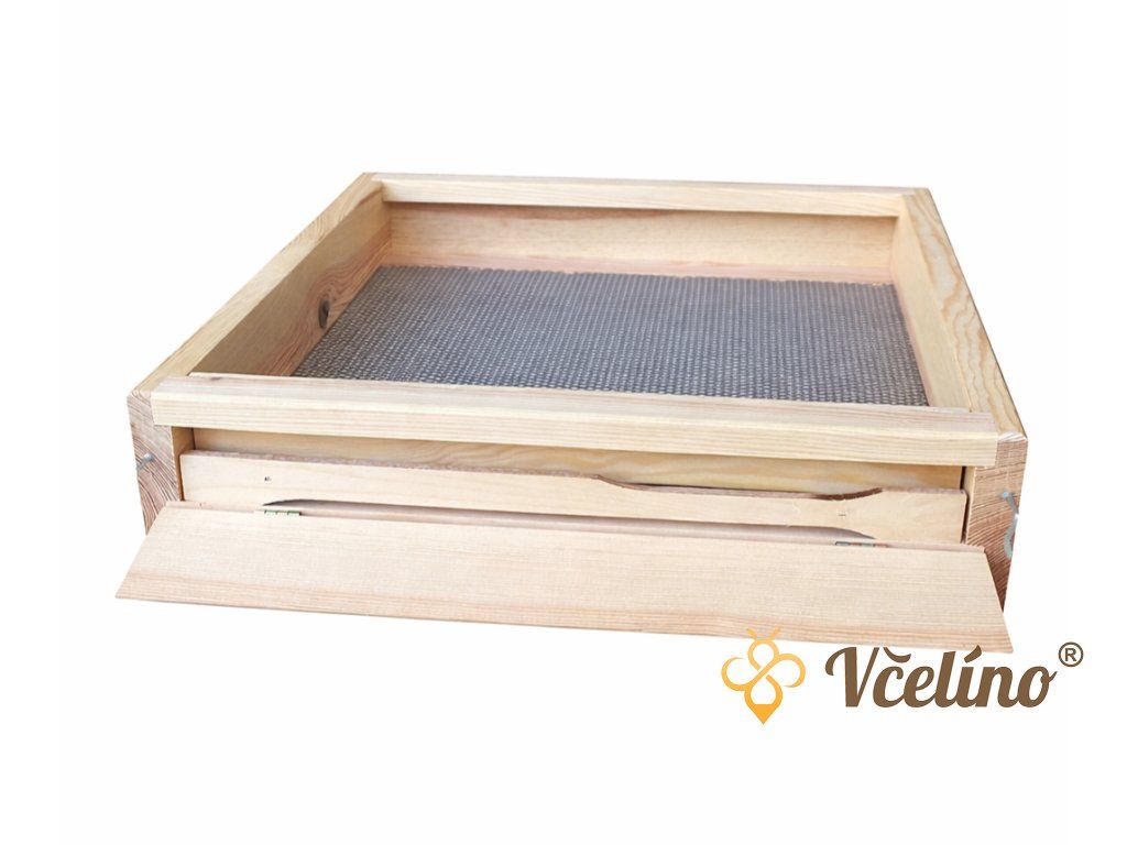 Klasické dřevěné dno pro tenkostěnné úly s možností kontroly spadu roztočů a snadným čištěním.
