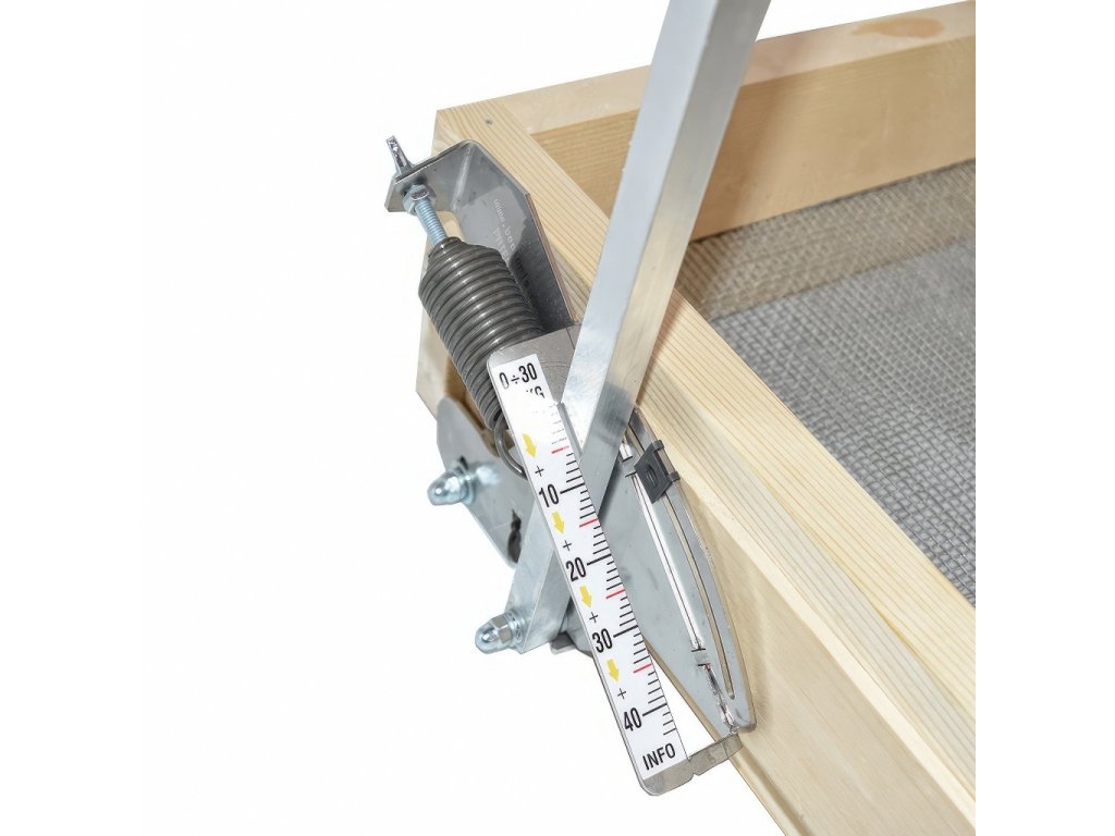 • Seřízení: předepnutím pružiny nastavíte stupnici na nulu u prázdného úlu