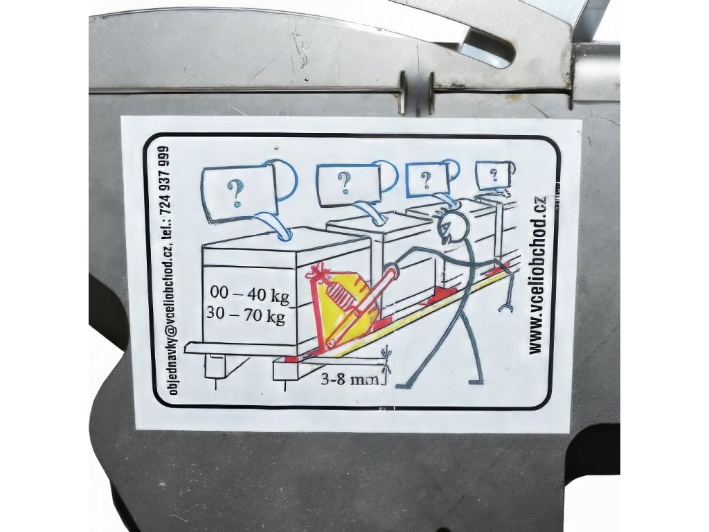 Váha nevyžaduje napájení ani složité kalibrace – předepnutím pružiny a seřízením váhy na prázdném úlu nastavíte nulu. Při dalším vážení se odečítá pouze hmotnost včel, zásob a pylu.