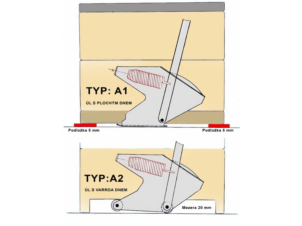 Na rozdíl od běžných mechanických vah je model A2 přizpůsoben specifickému tvaru varroa dna, což zajišťuje přesnější a pohodlnější použití bez nutnosti podkládání úlu.