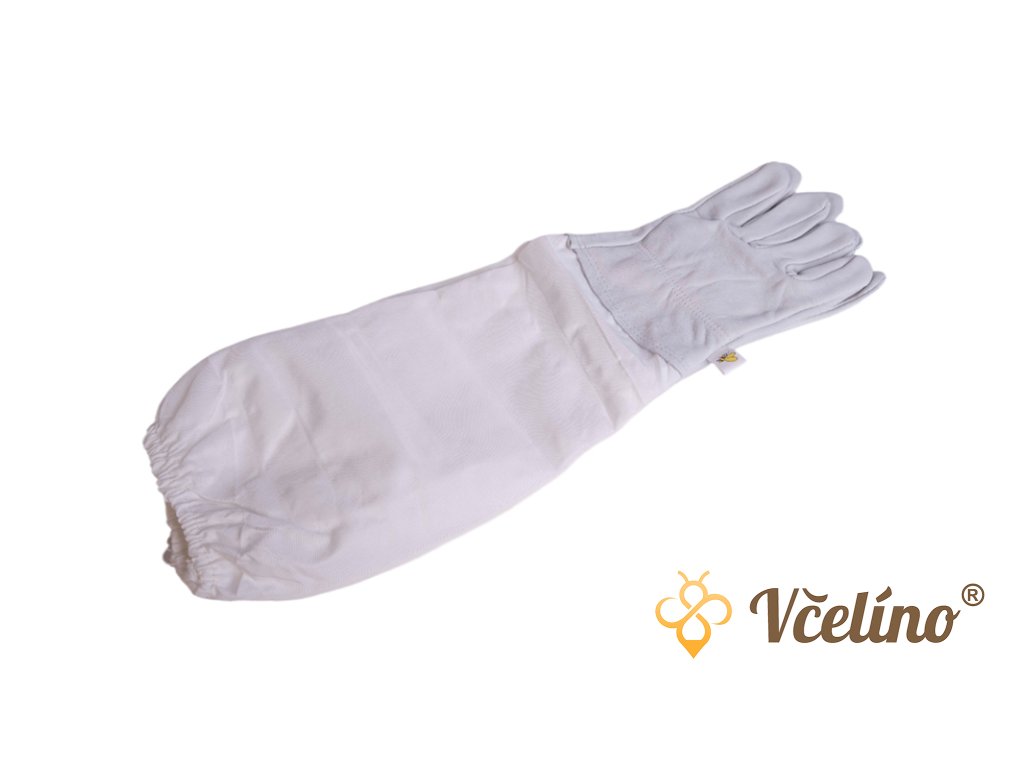 Dlouhý návlek: sahá až k lokti a je vyroben z pevné bavlněné tkaniny, která zabraňuje včelímu bodnutí, na konci je stahující manžeta, která zabraňuje vniku včel dovnitř rukavice