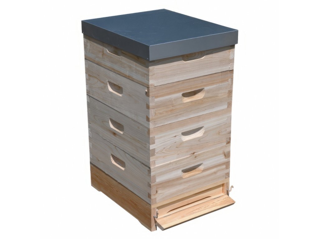 Kompletní sestava Langstroth úlu s čtyřmi nástavky typu 2/3 – ideální pro medníky i plodiště v jednom.