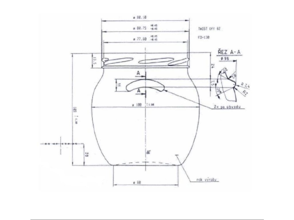 Sklenice je vyrobena z čirého, pevného skla, které skvěle ukáže barvu a strukturu obsahu. Široké hrdlo TO 82 zajišťuje pohodlné plnění i bezpečné uzavření běžně dostupným víčkem.